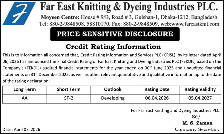 Price Sensitive Information of Far East Knitting & Dyeing Industries Limited