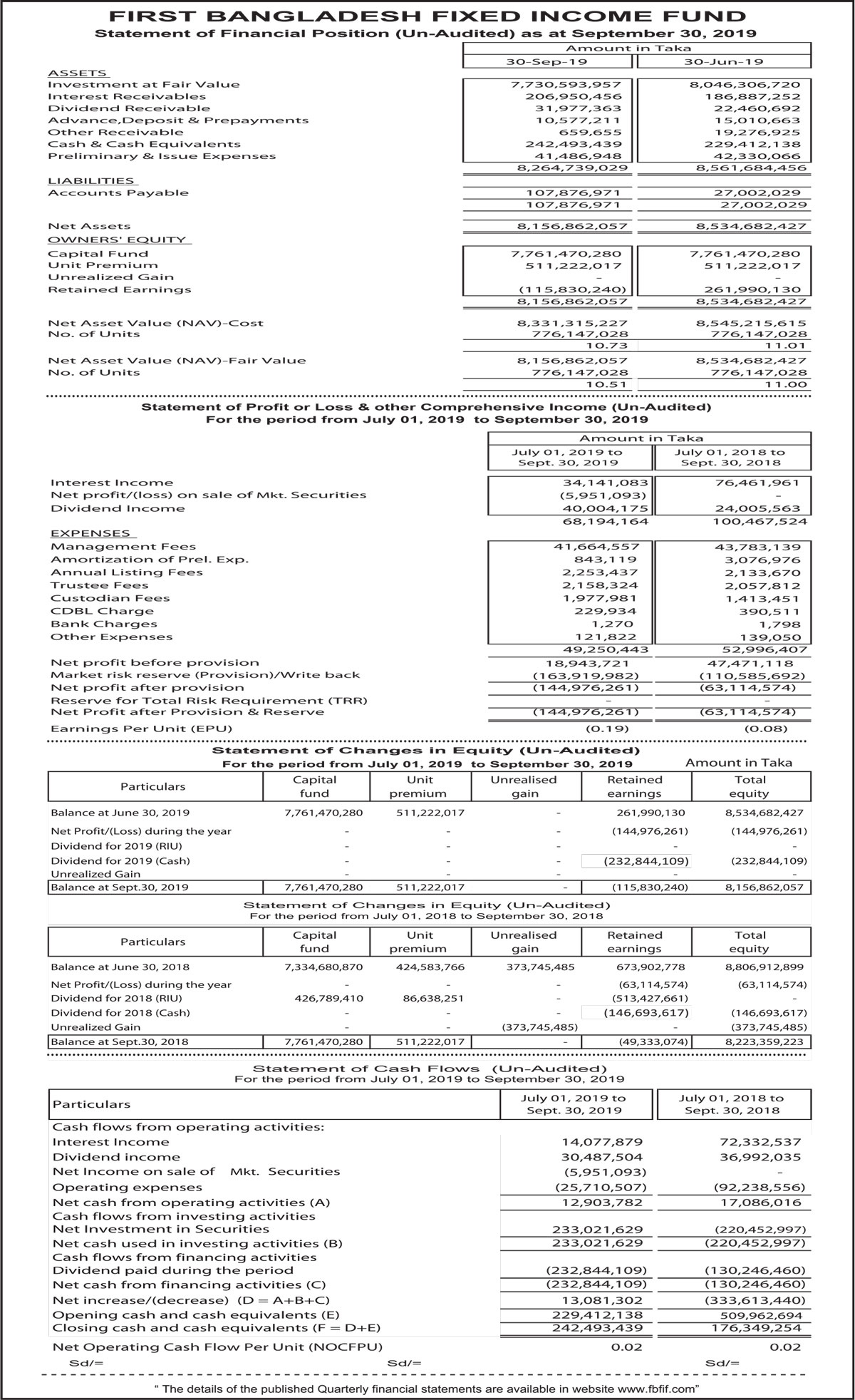 First Bangladesh Fixed Income Fund 3Q Financial Statements