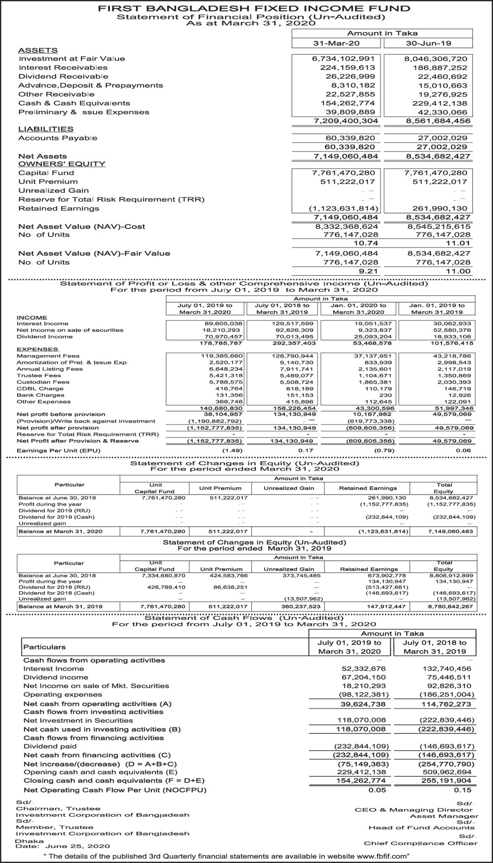 First Bangladesh Fixed Income Fund 3Q Financial Statements