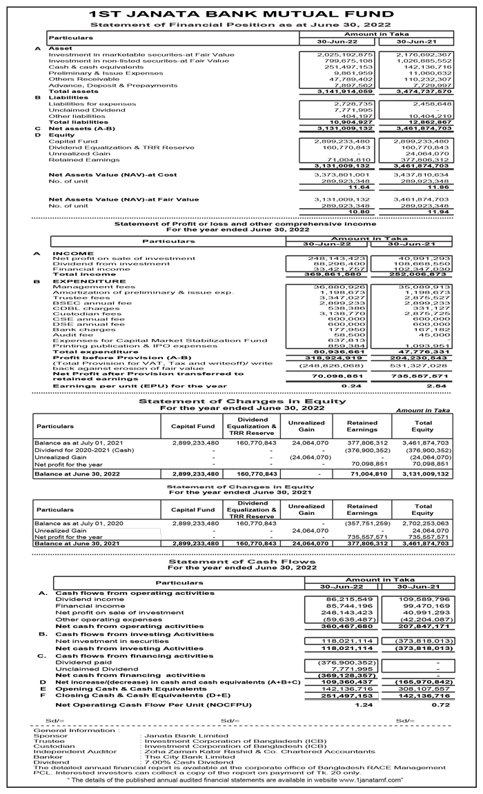 Price Sensitive Information of 1st Janata Bank Mutual Fund
