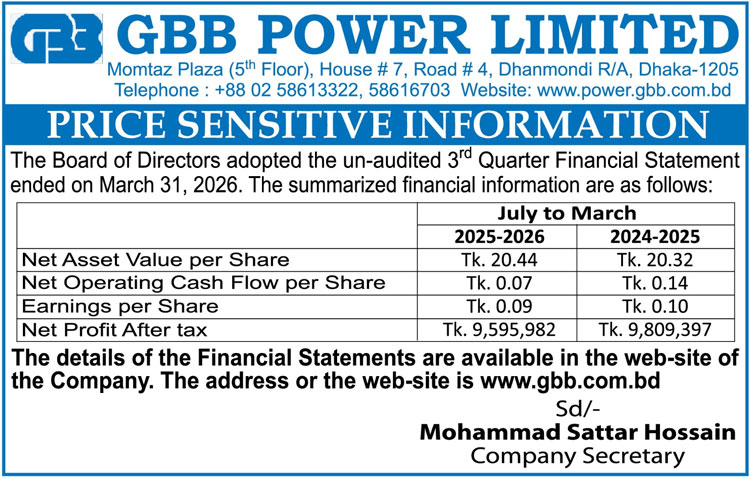 Price Sensitive Information of GBB Power PLC.