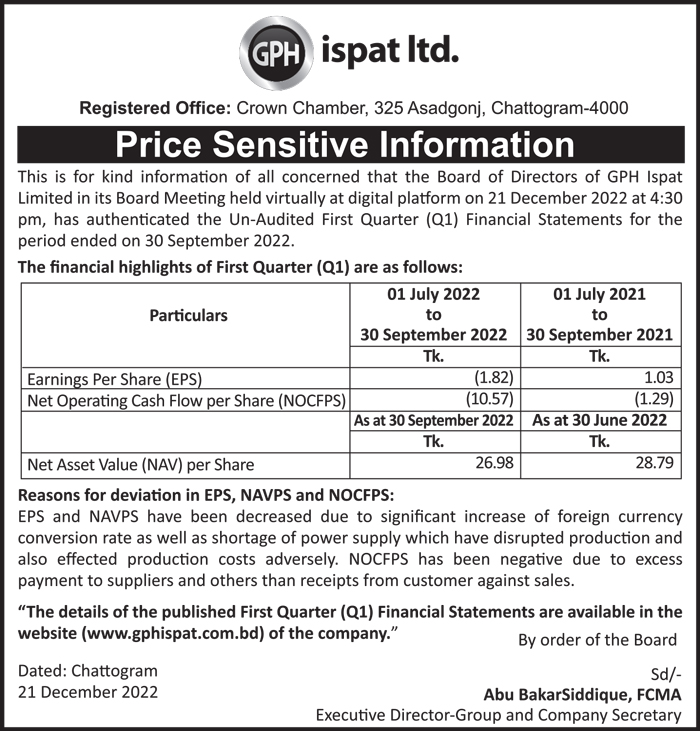General Notice to the Honorable Shareholder of GPH Ispat Ltd.