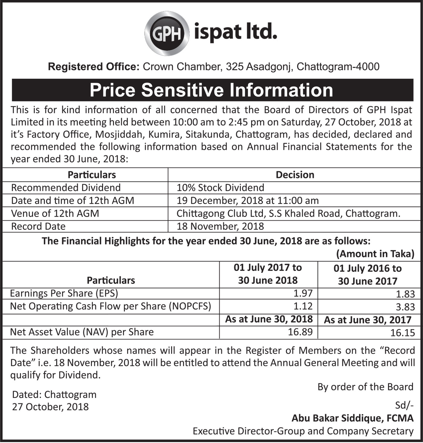 General Notice to the Honorable Shareholder of GPH Ispat Ltd.