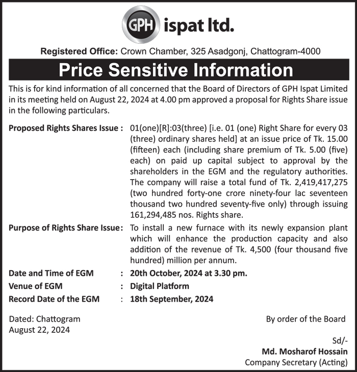 Price Sensitive Information of GPH Ispat Limited