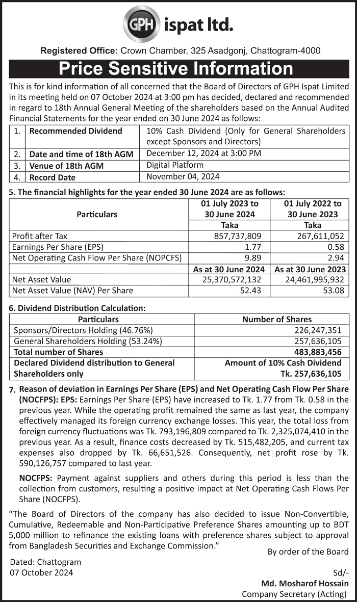 Price Sensitive Information of GPH Ispat Limited