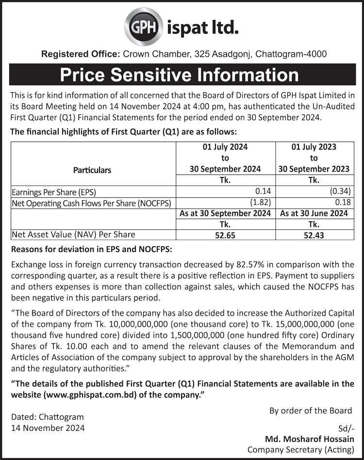 General Notice to the Honorable Shareholder of GPH Ispat Ltd.