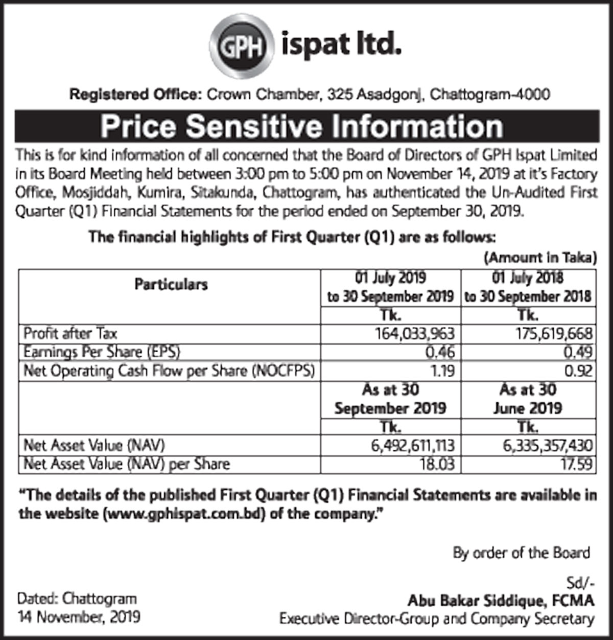General Notice to the Honorable Shareholder of GPH Ispat Ltd.