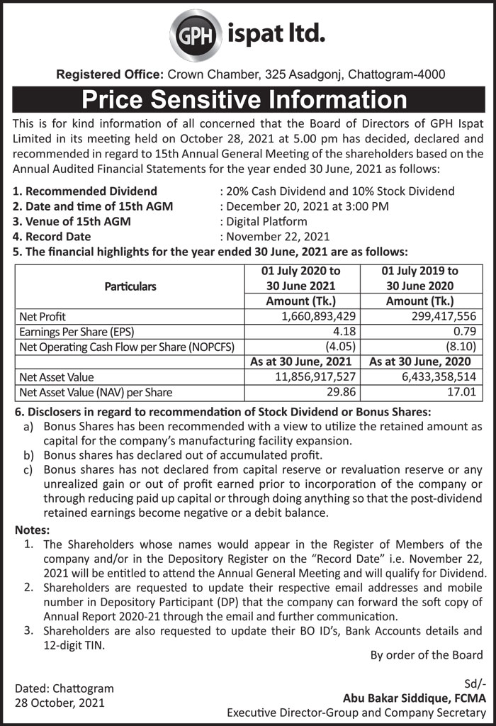 General Notice to the Honorable Shareholder of GPH Ispat Ltd.
