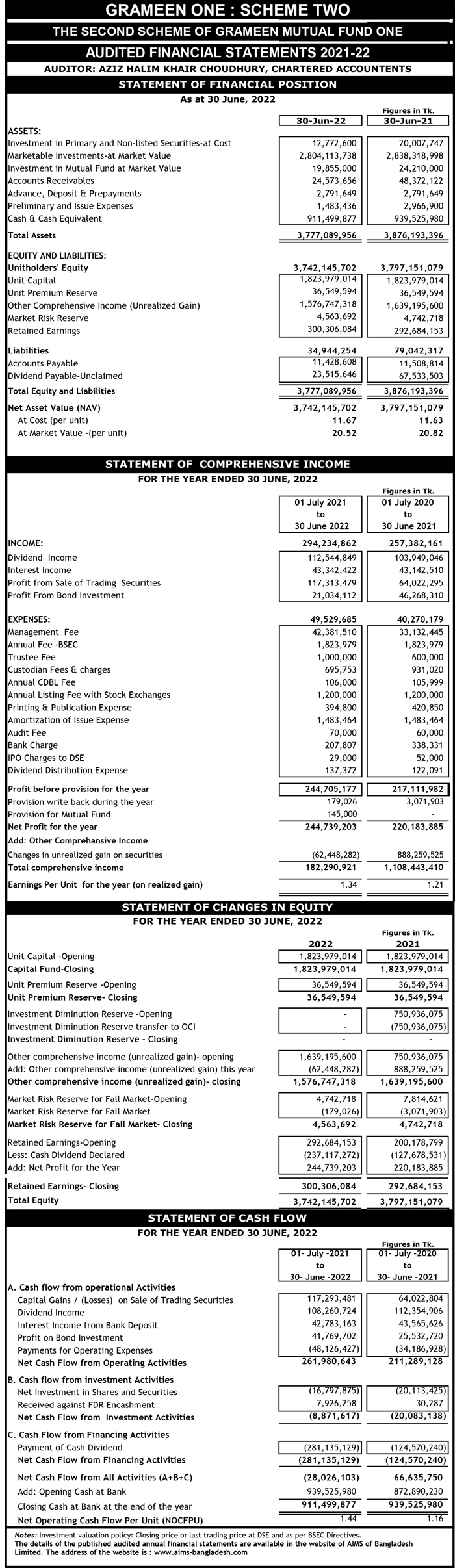 2nd Quarterly Price Sensitive Information (PSI) and Financial Statements of Grameen One: Scheme Two