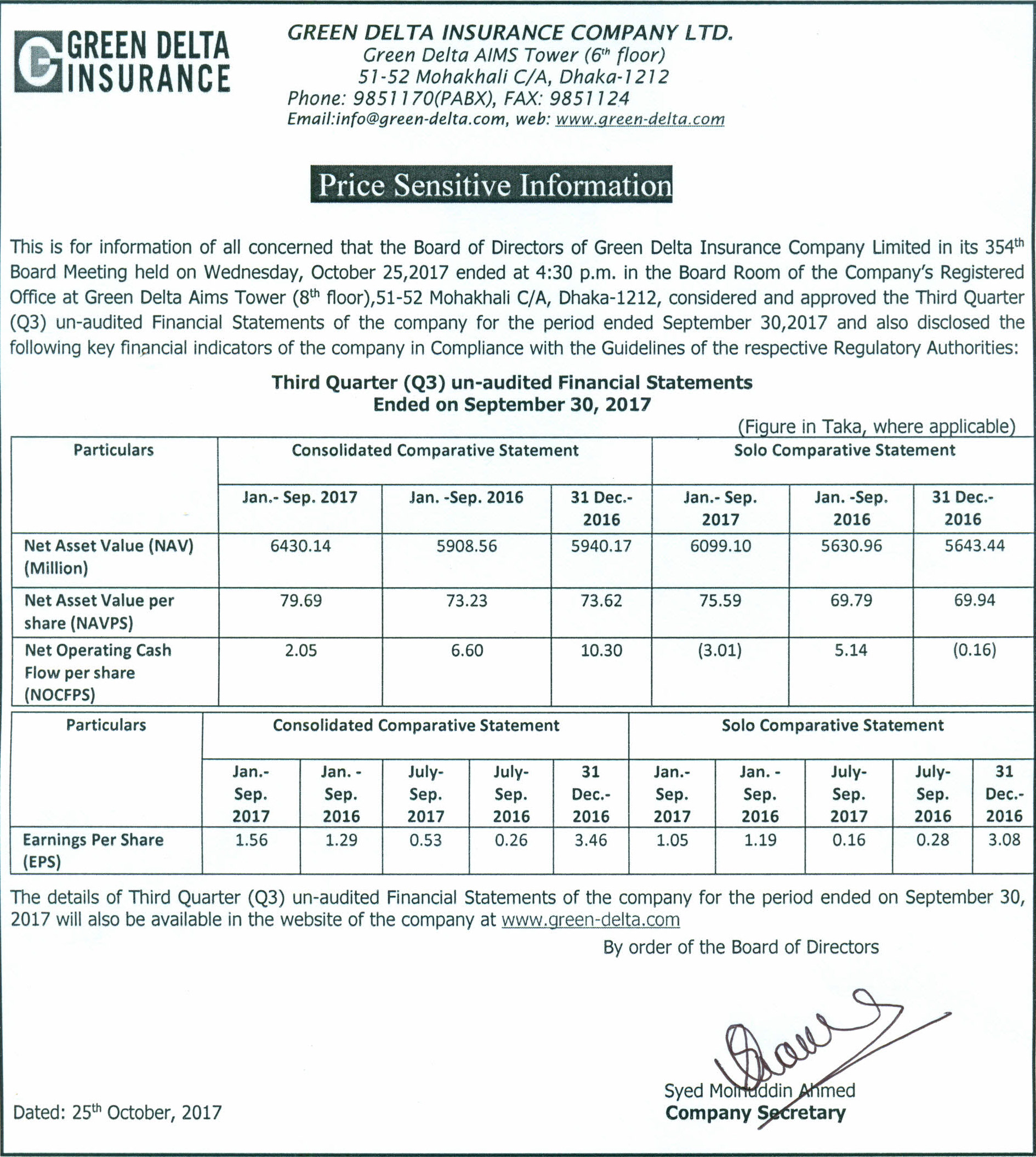 Price Sensitive Information Of Green Delta Insurance Co. Ltd.