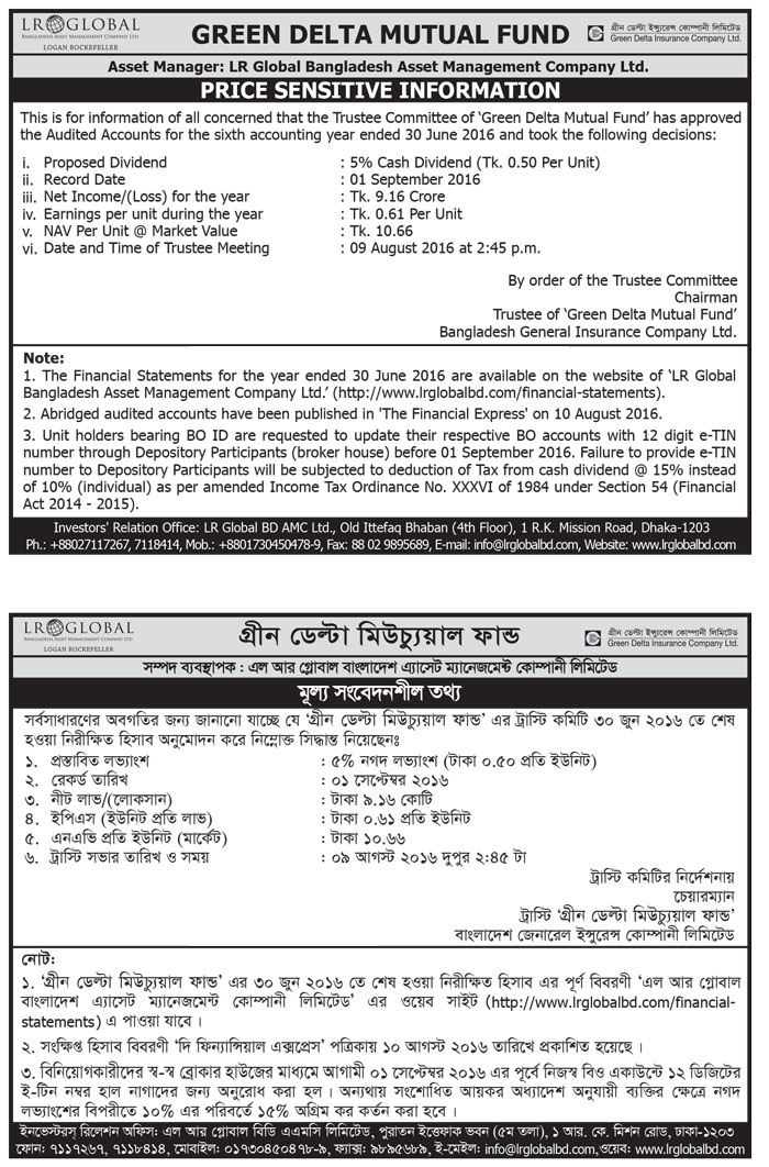 Half-Yearly Financial Statements (Unaudited) of Green Delta Mutual Fund