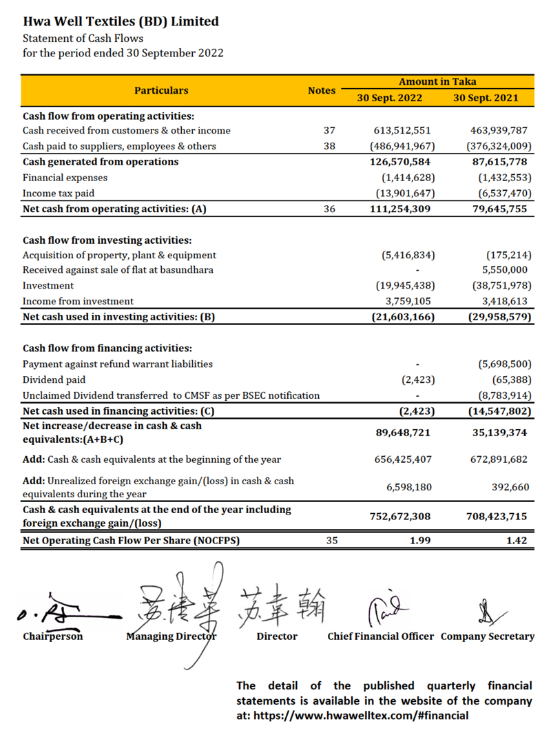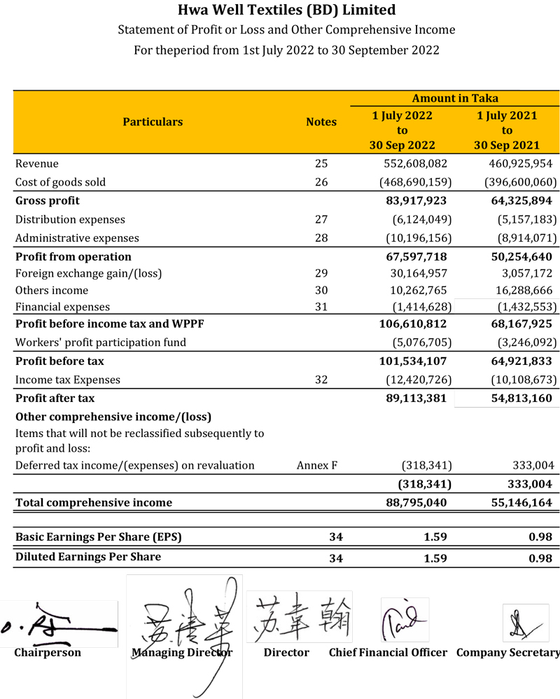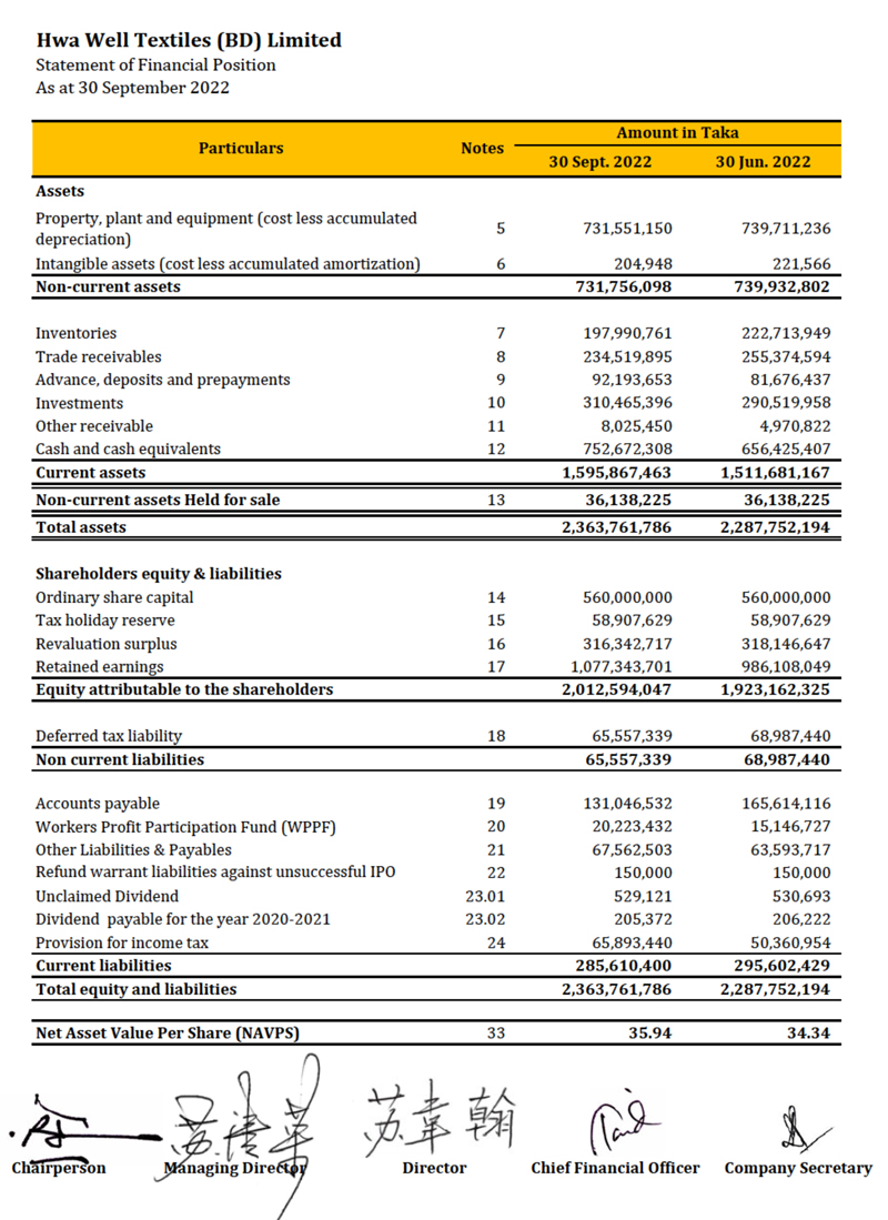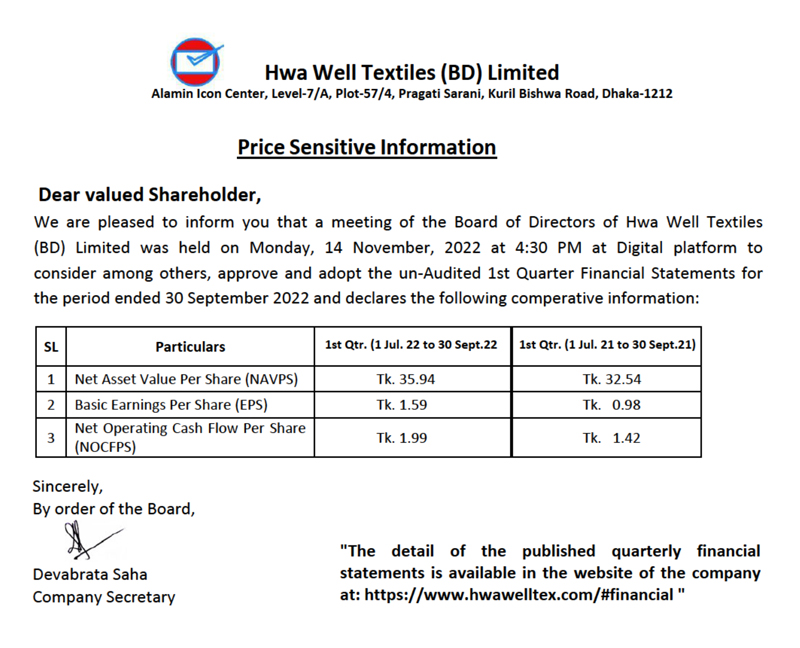 Price Sensitive Information (Q1) of Hwa Well Textiles (BD) PLC.
