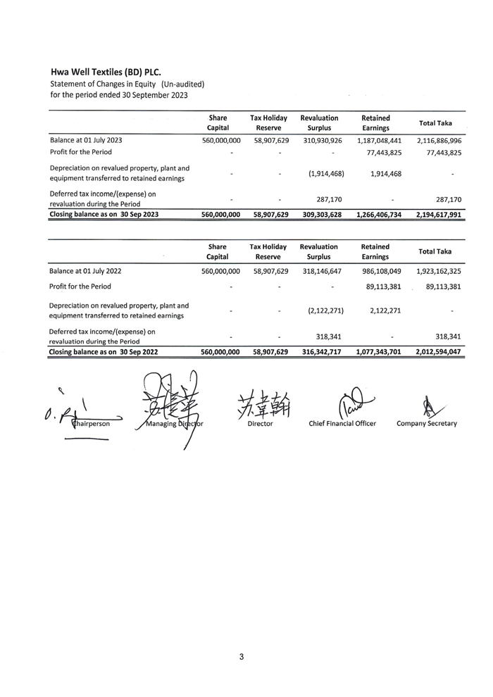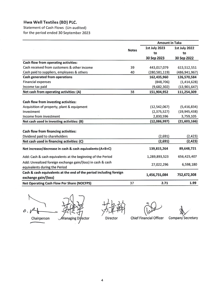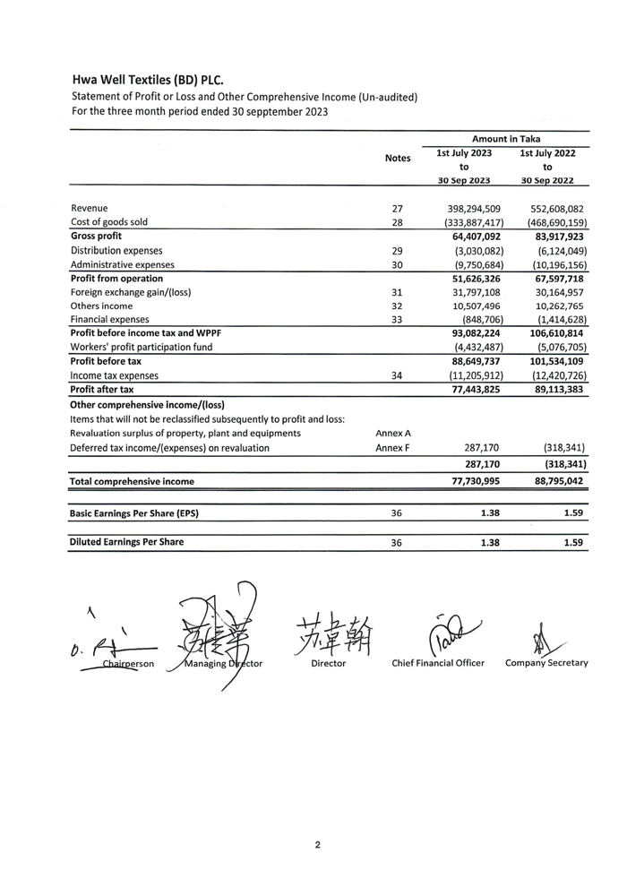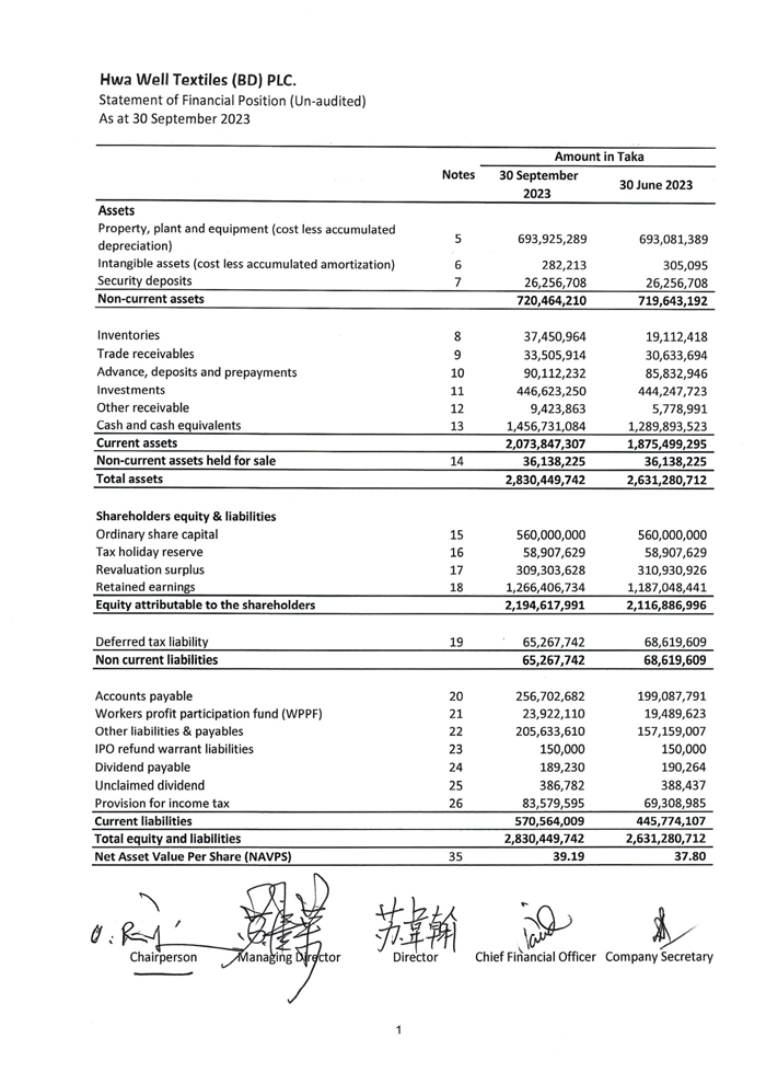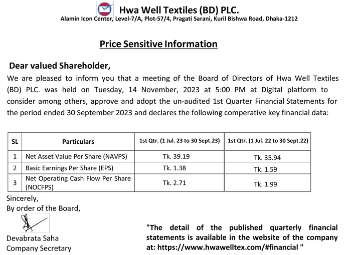 Price Sensitive Information (Q1) of Hwa Well Textiles (BD) PLC.