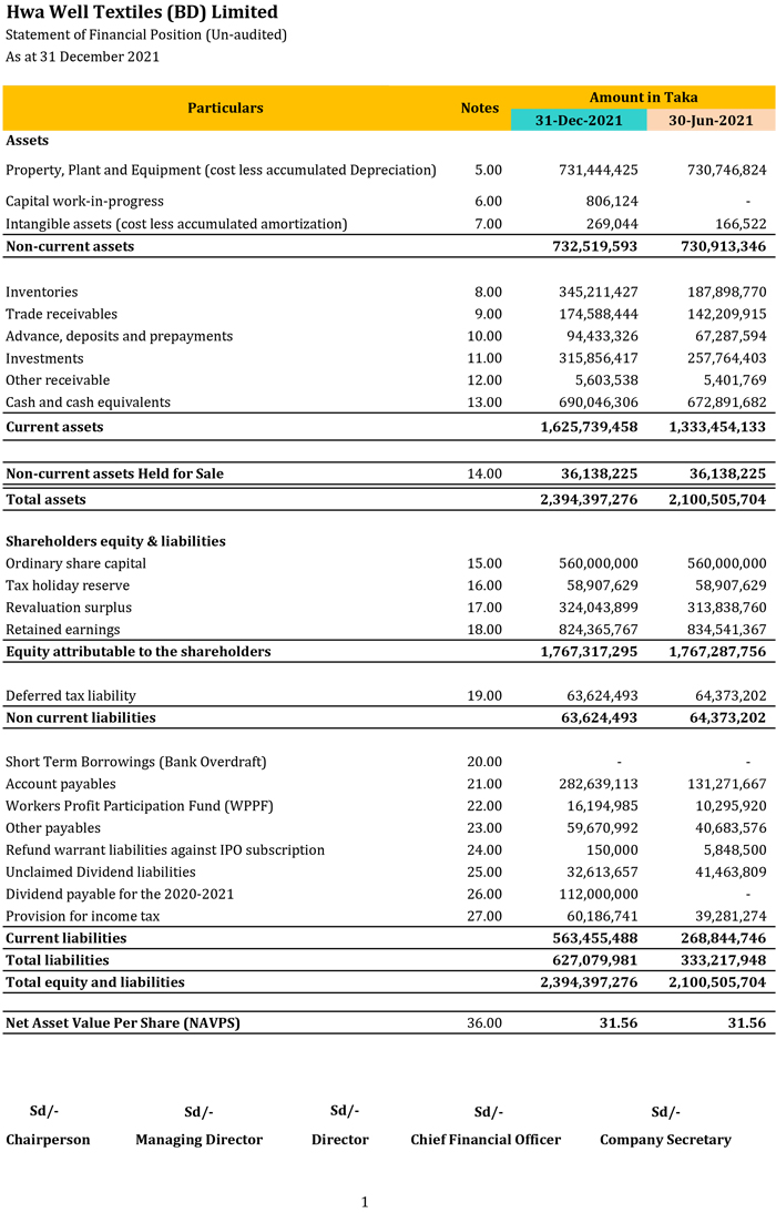 Price Sensitive Information (Q1) of Hwa Well Textiles (BD) PLC.