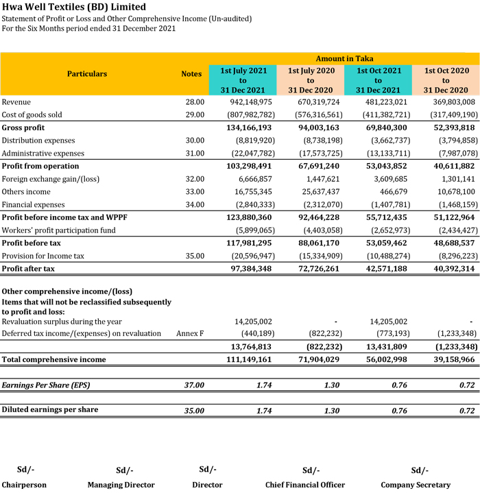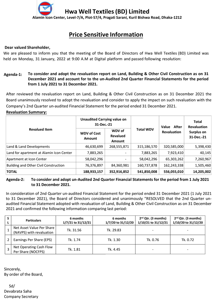 Price Sensitive Information of Hwa Well Textiles (BD) Limited