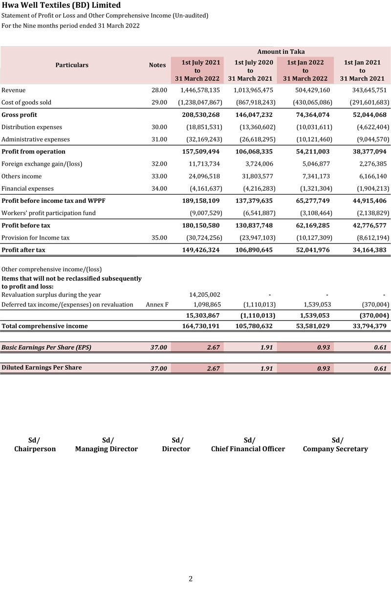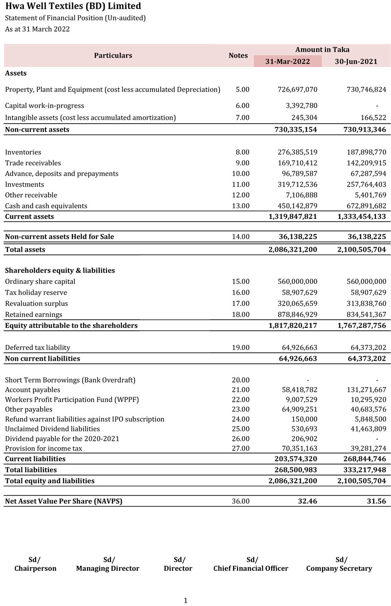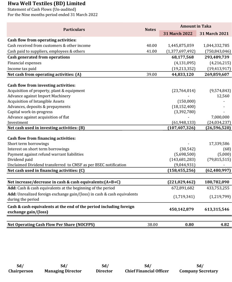 Price Sensitive Information (Q1) of Hwa Well Textiles (BD) PLC.