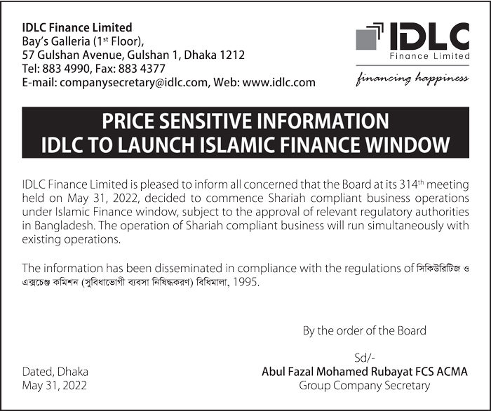 Price Sensitive Information IDLC to Launch Islamic Finance Window