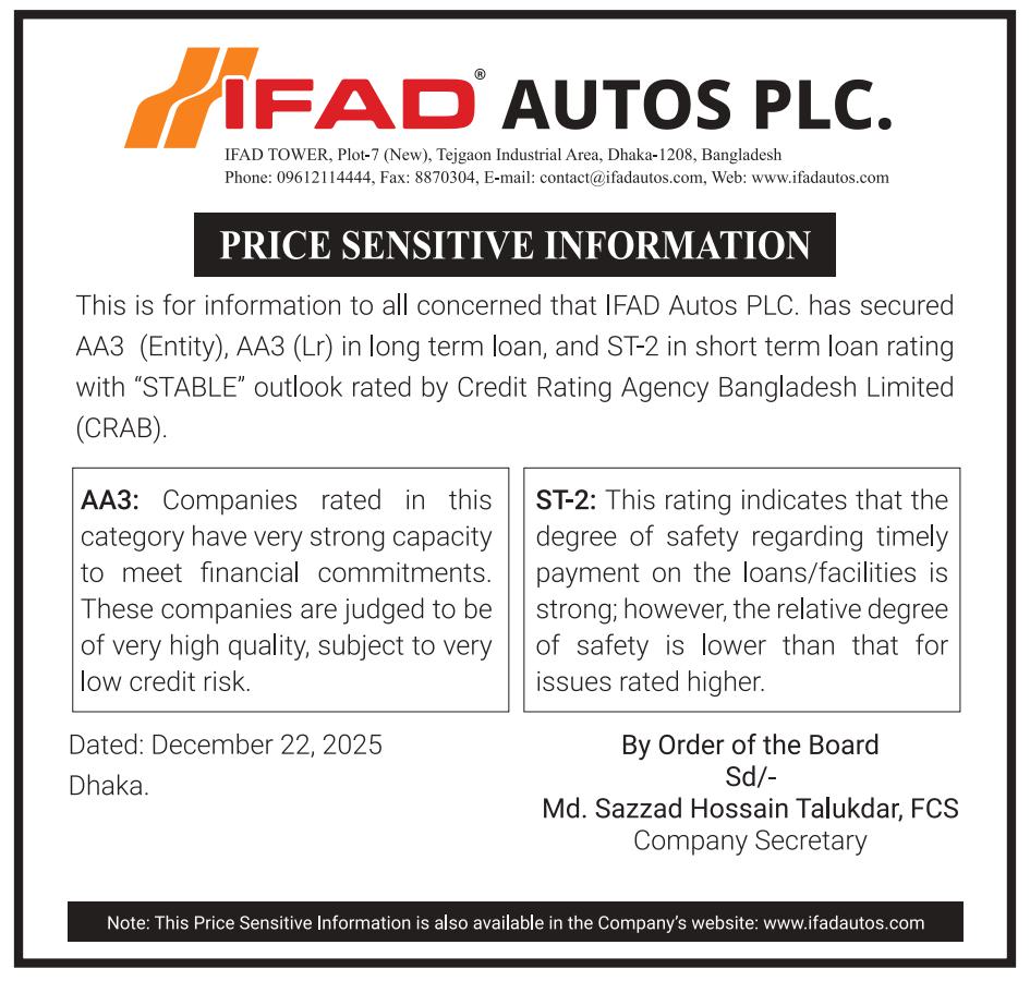 Price Sensitive Information on Credit Rating of Crown Cement PLC.