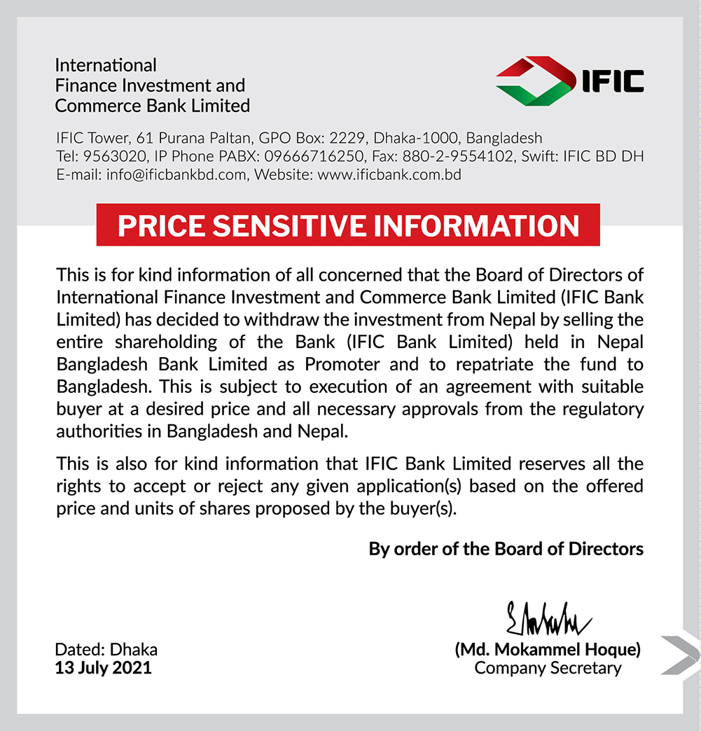 Q3 Condensed Interim Financial Report (Un-audited) of IFIC Bank