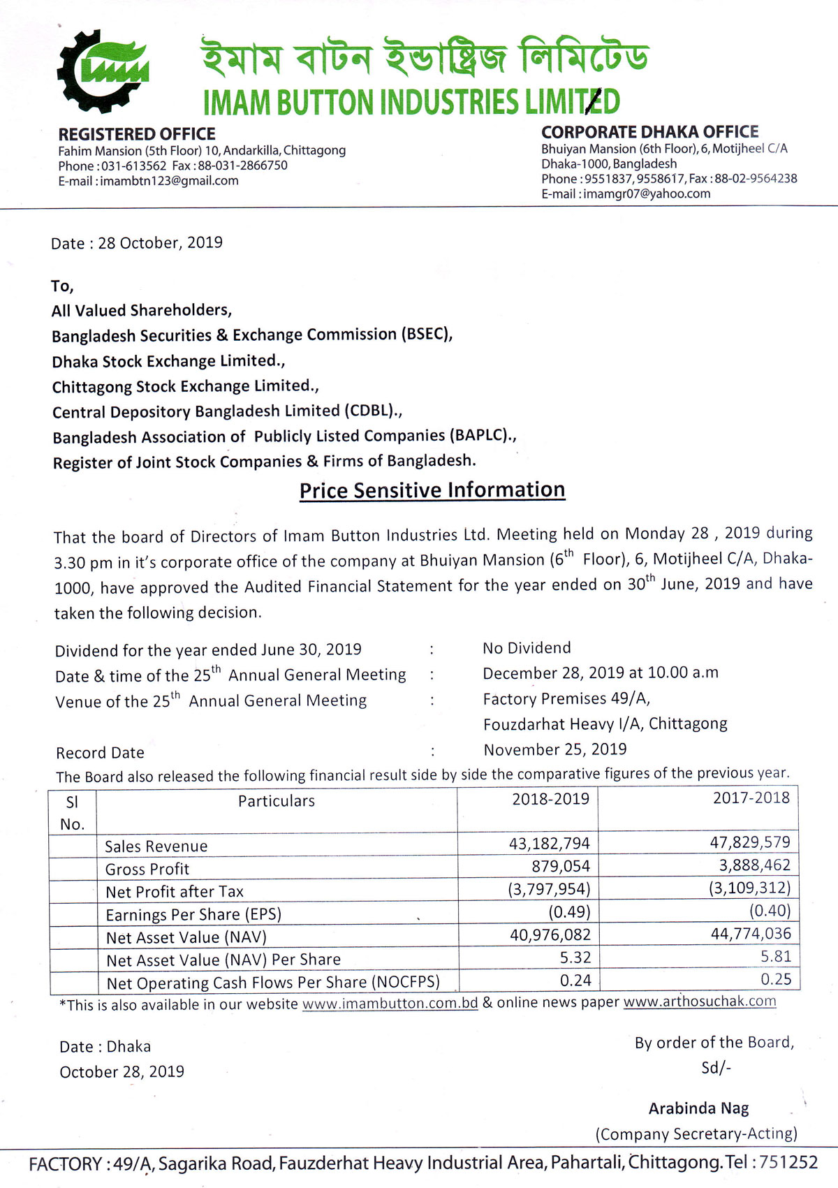 25th Annual General Meeting of Imam Button Industries Ltd.