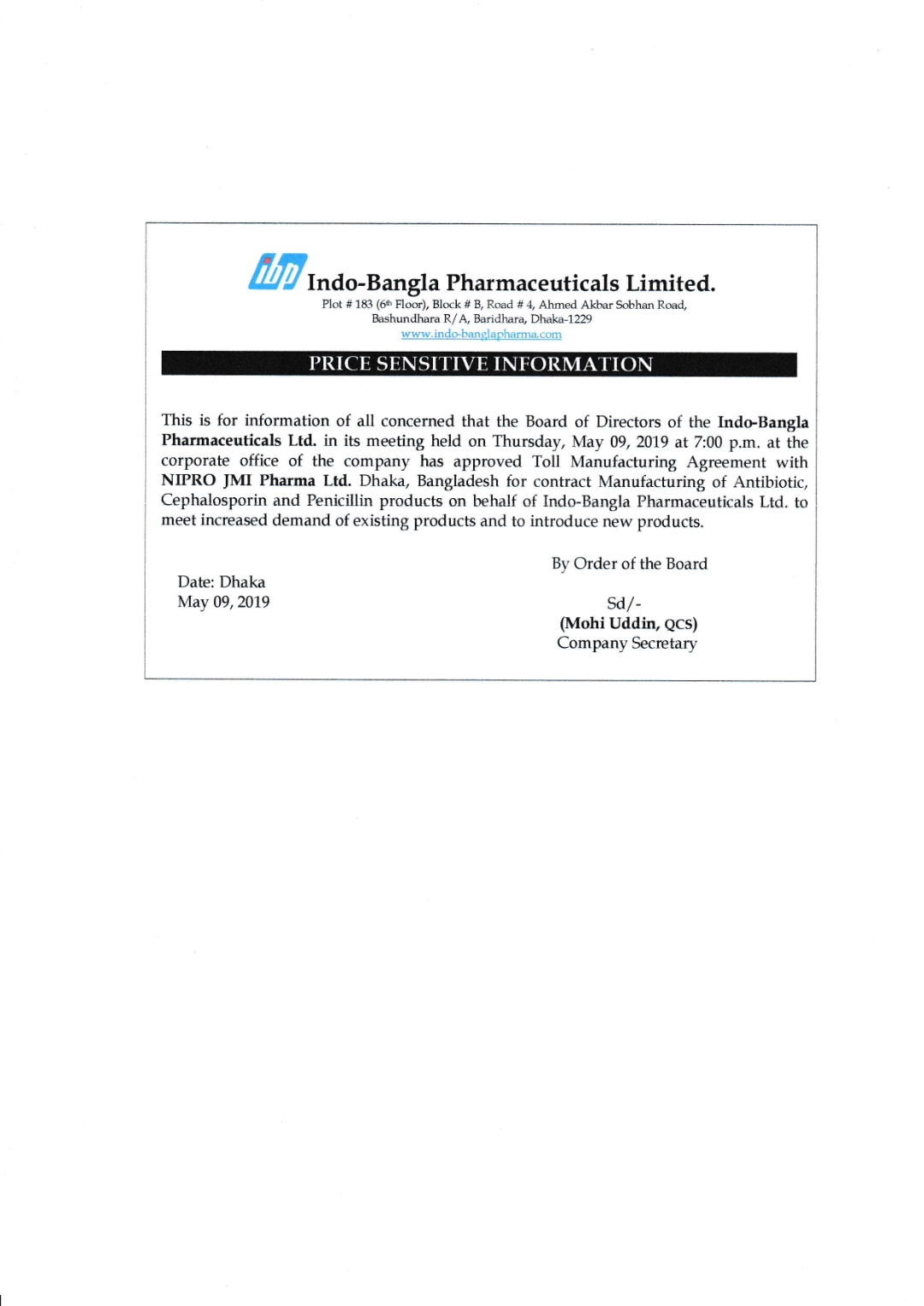 Price Sensitive Information of Indo Bangla Pharmaceuticals Ltd