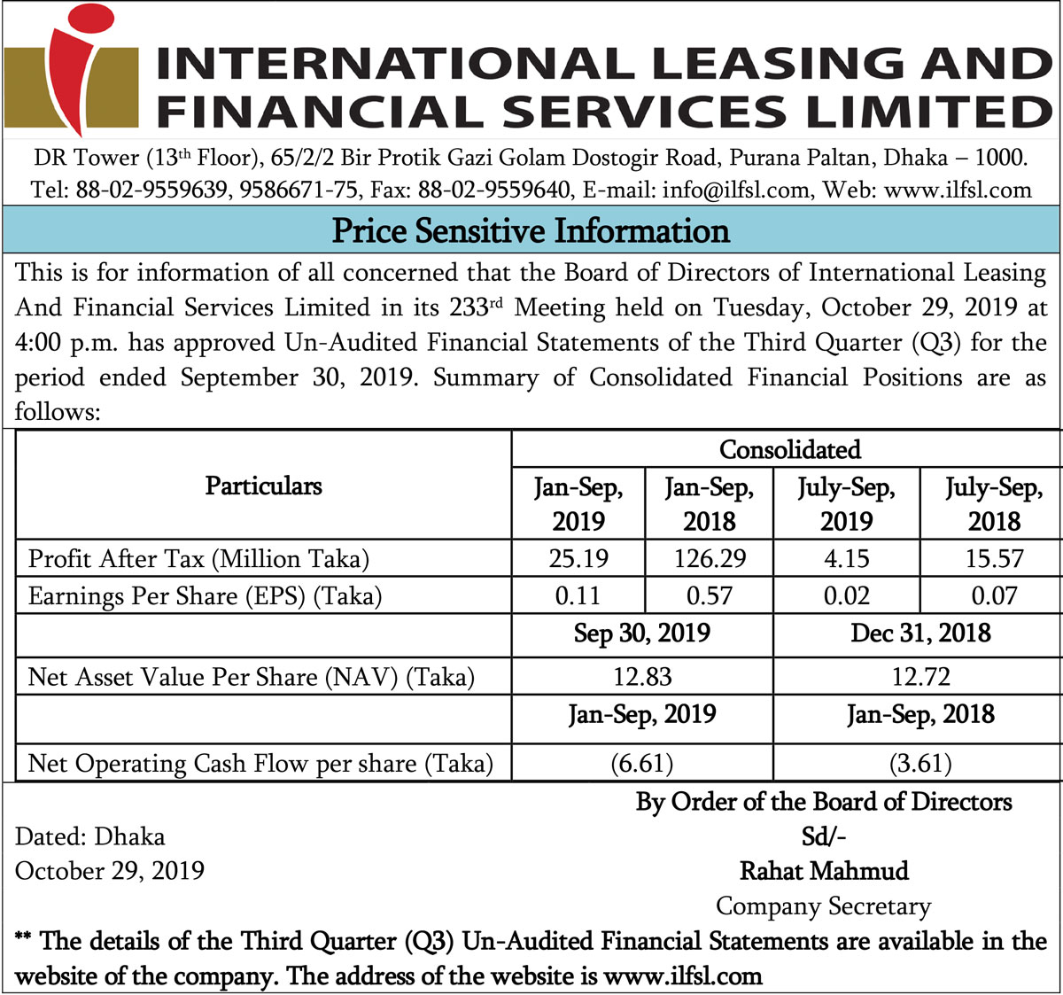 Q1 Financial Statements (Un-audited) of International Leasing & Financial Service Ltd.