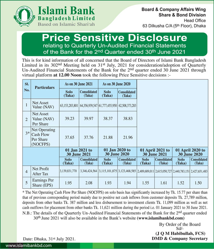 Price Sensitive Information of Islami Bank