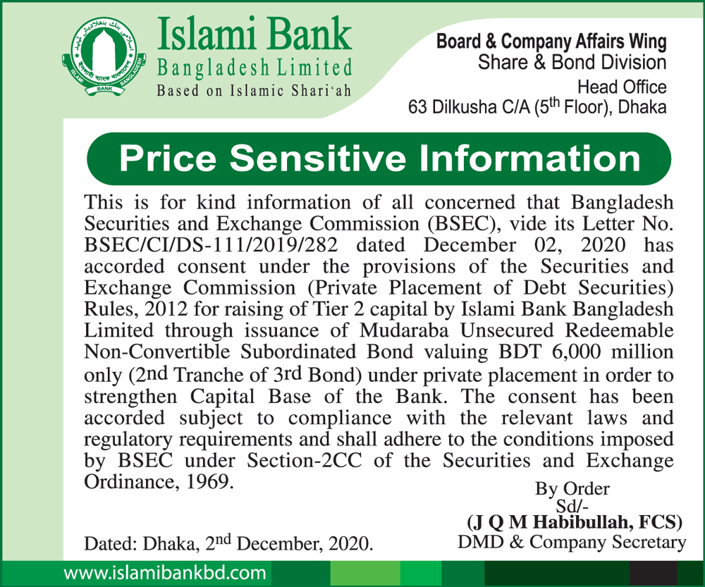 Price Sensitive Information of Islami Bank