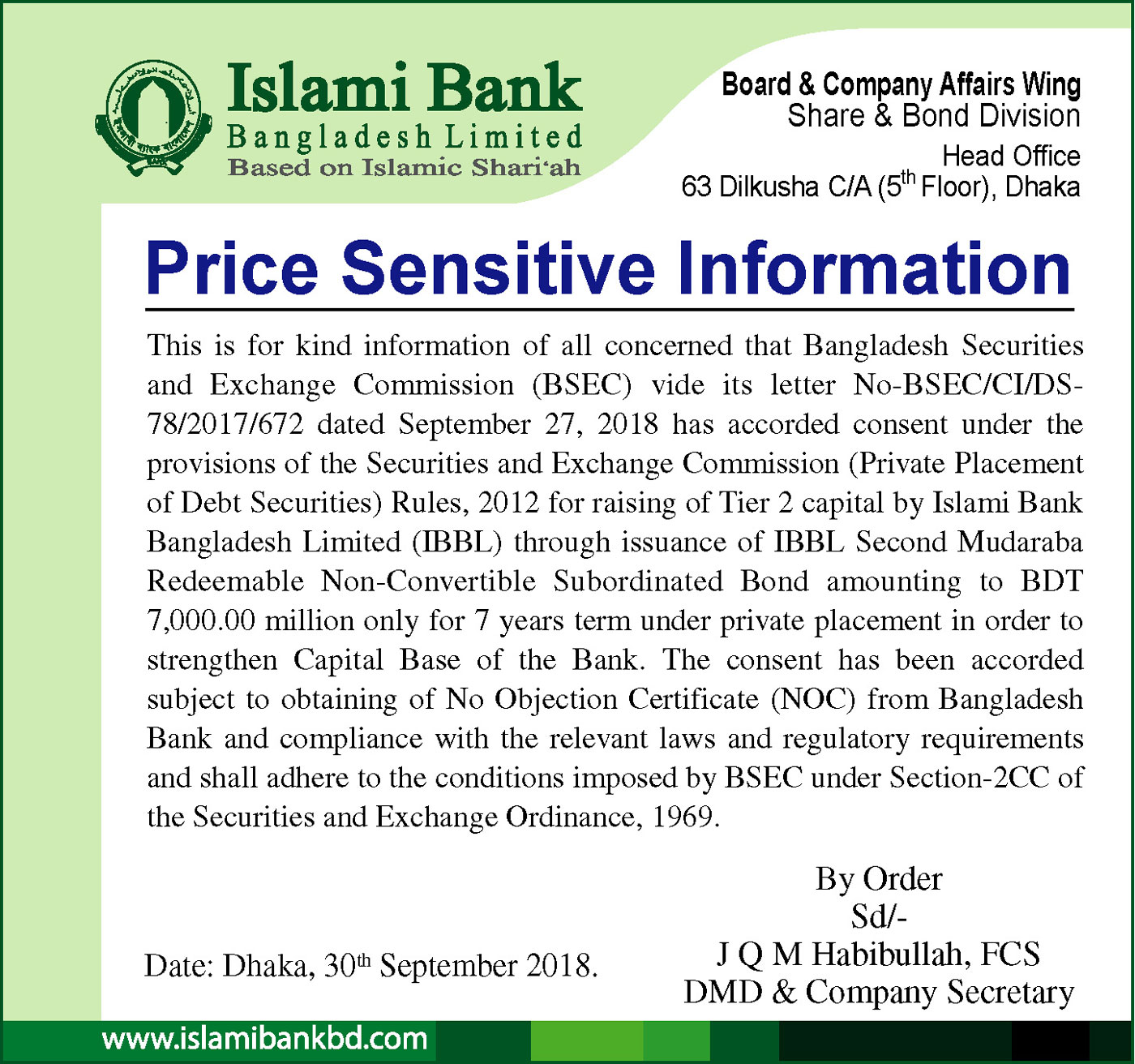 notice for record date for entitlement of Profit against IBBL 2nd Perpetual Mudaraba Bond