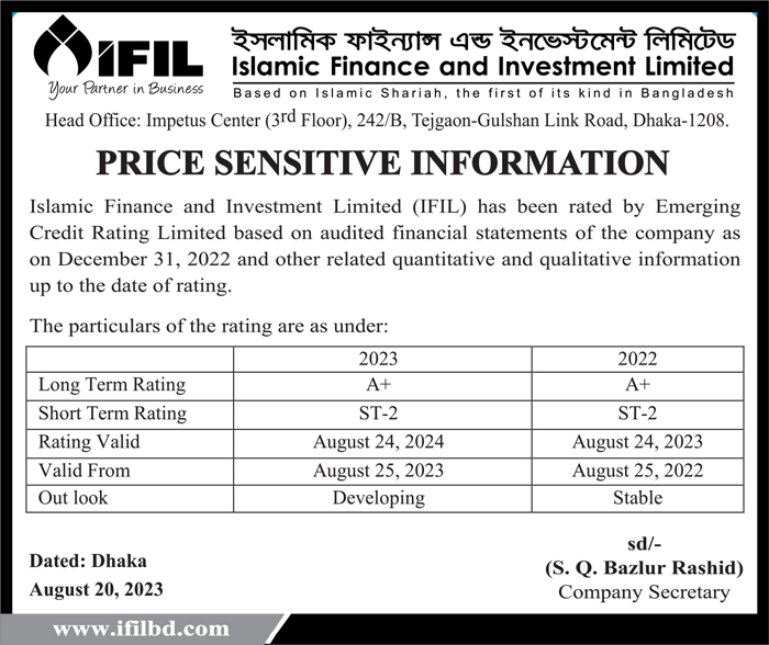 Price Sensitive Information of Islamic Finance & Investment Ltd