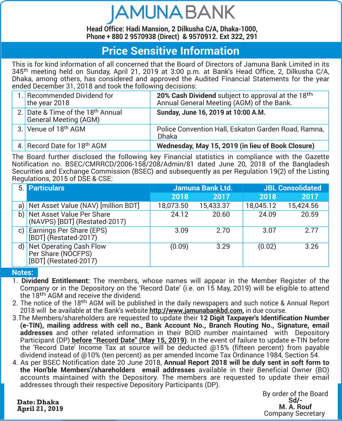 Information Sensitive to Share Price (Q2) of Jamuna Bank
