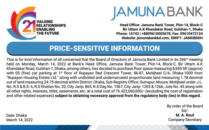 Information Sensitive to Share Price (Q2) of Jamuna Bank