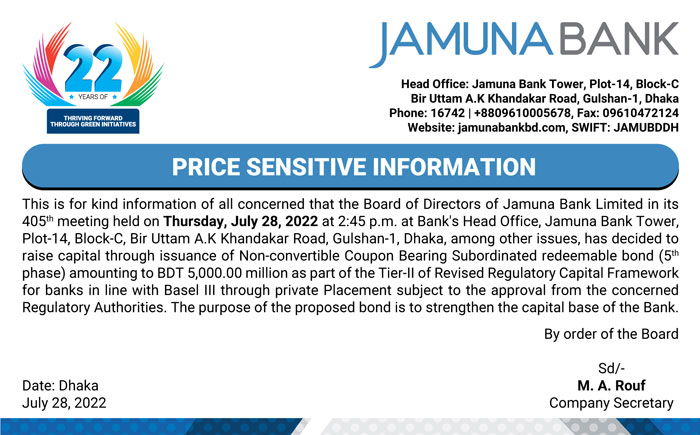 Information Sensitive to Share Price (Q2) of Jamuna Bank