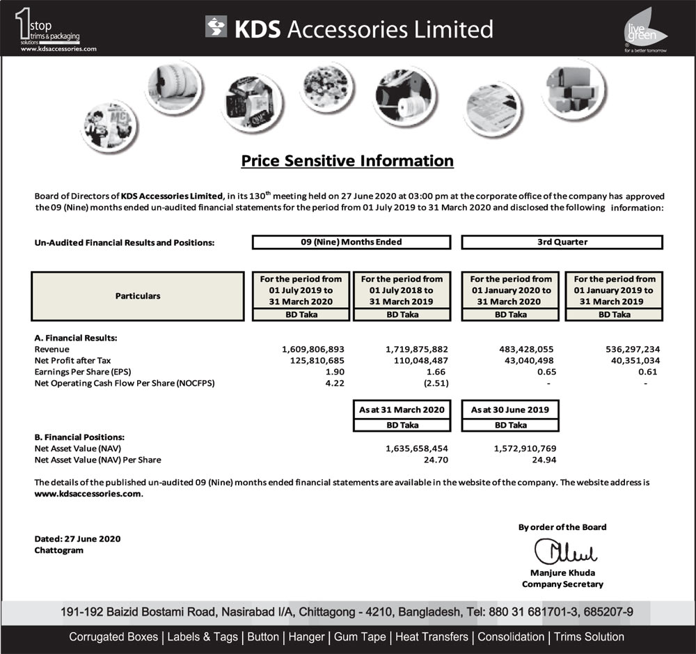 Price Sensitive Information of KDS Accessories Limited
