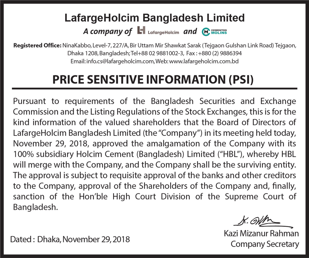 Price Sensitive Information of LafargeHolcim Bangladesh Limited