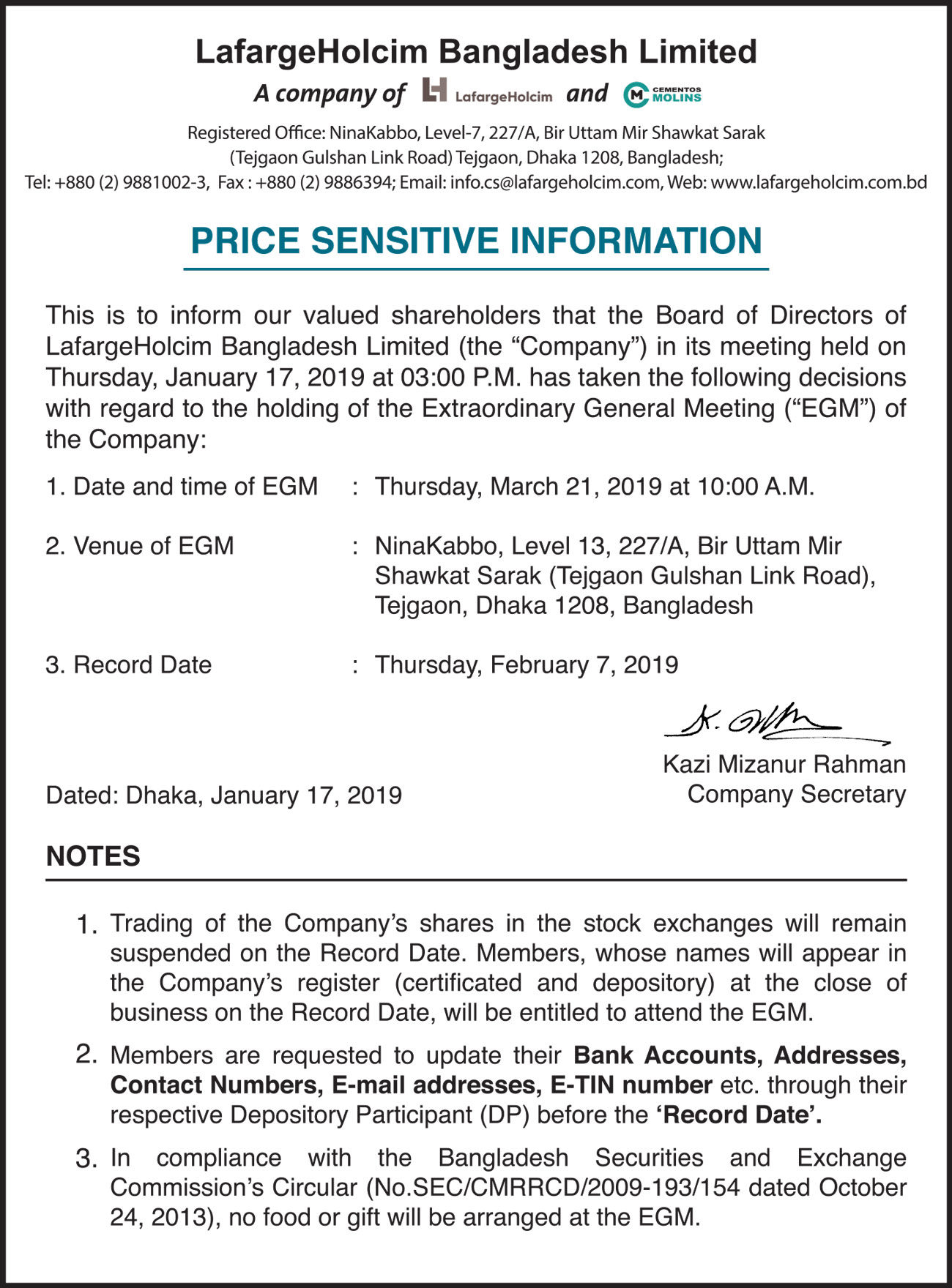Price Sensitive Information of LafargeHolcim Bangladesh Limited