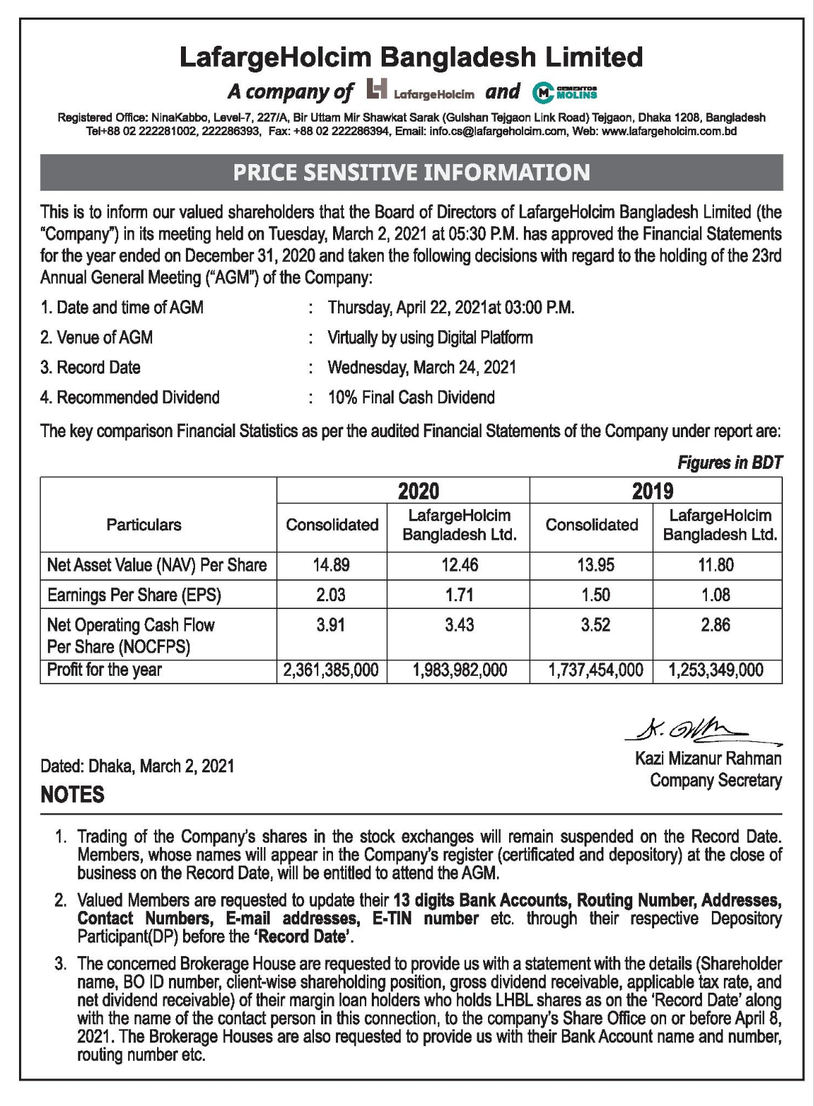 Price Sensitive Information of LafargeHolcim Bangladesh Limited