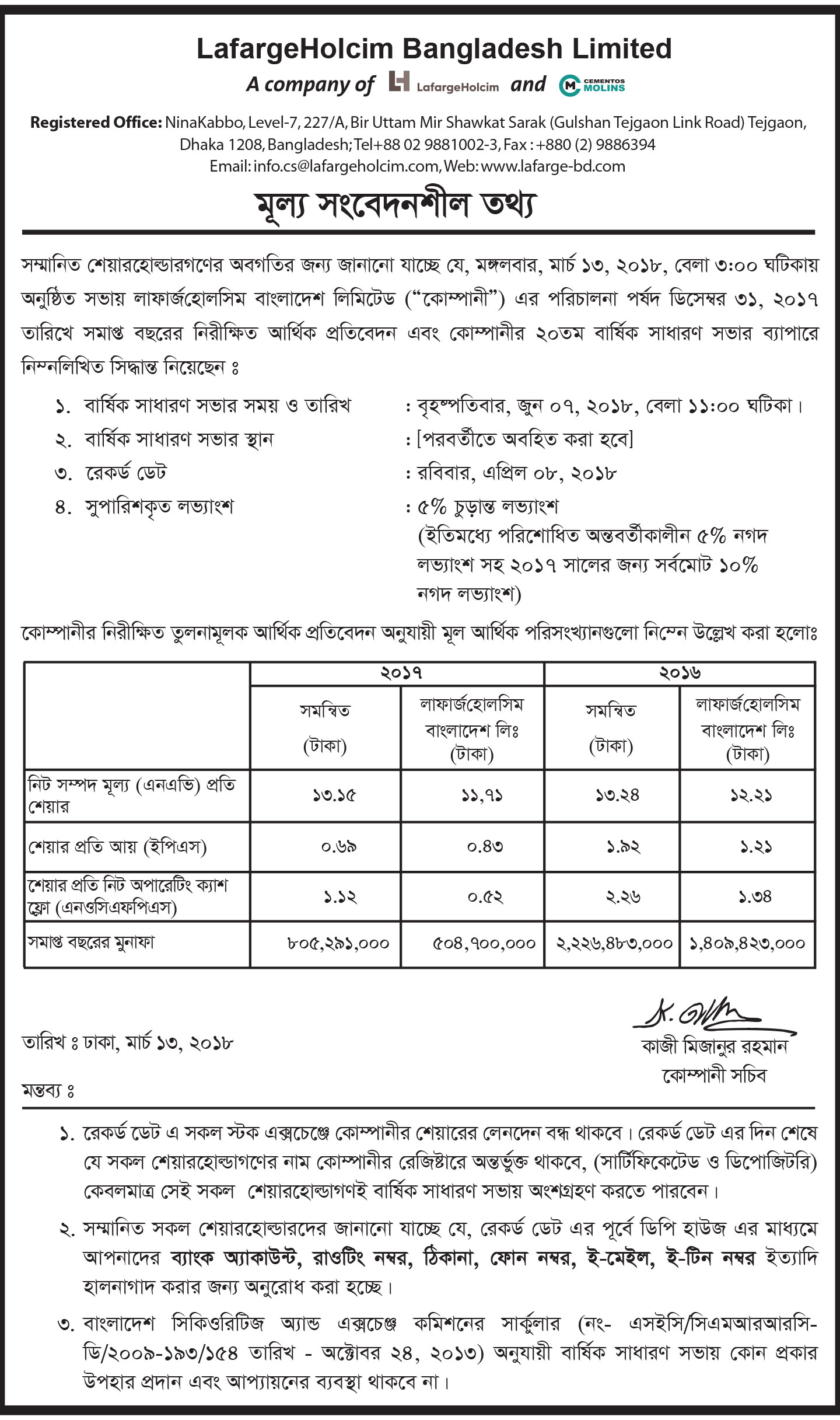 Price Sensitive Information of LafargeHolcim Bangladesh Limited