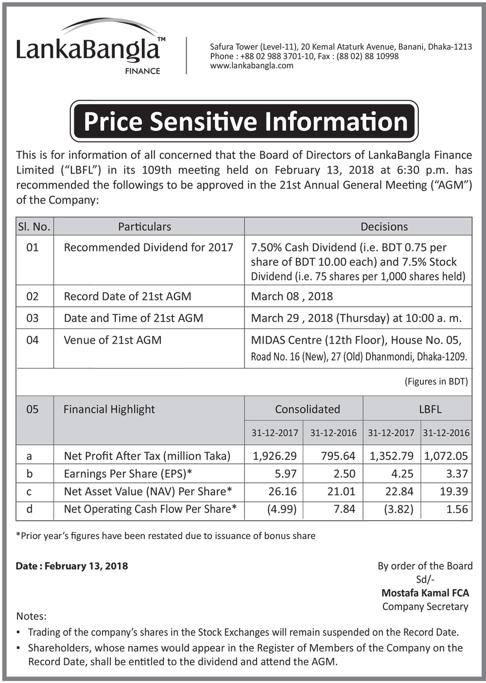 Un-audited Consolidated Financial Statements of LankaBangla Finance PLC.