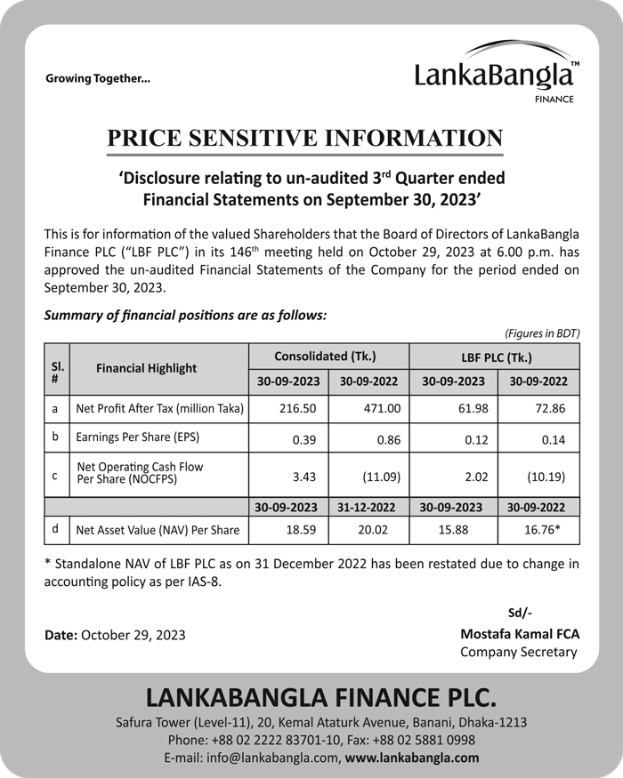 Price Sensitive Information of LankaBangla Finance PLC.