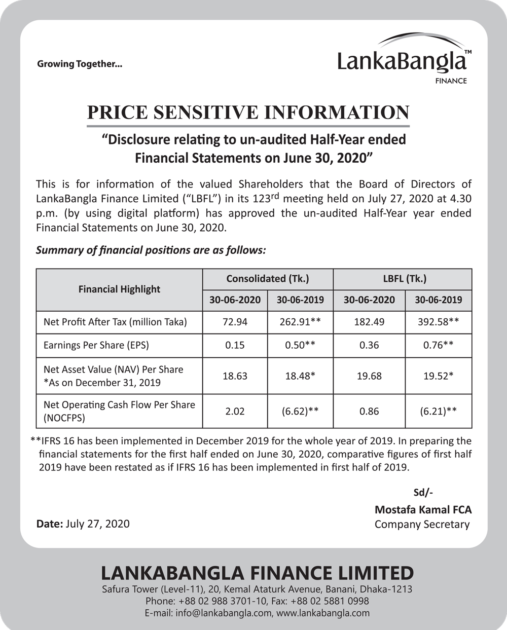 Un-audited Consolidated Financial Statements of LankaBangla Finance PLC.