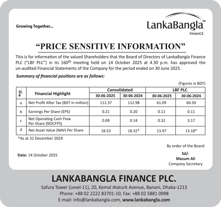 Price Sensitive Information of LankaBangla Finance PLC.