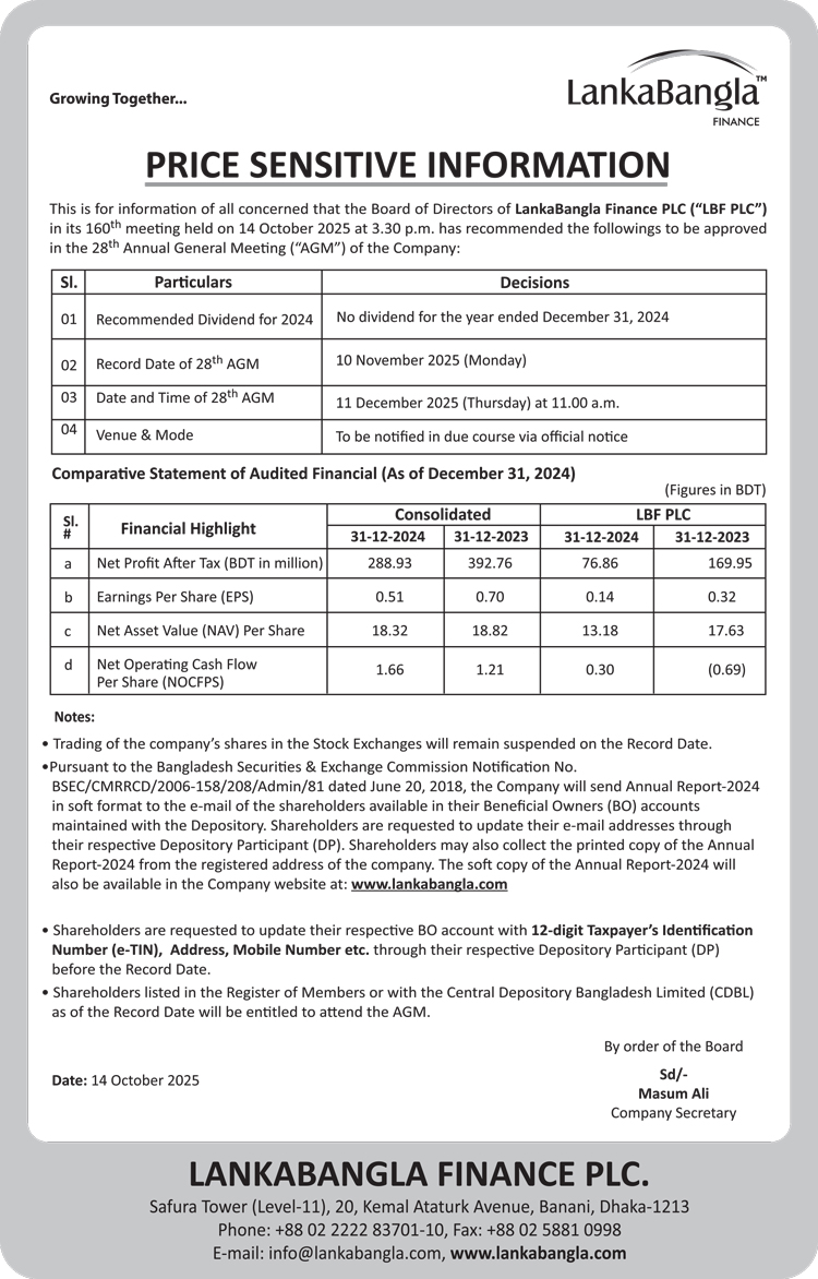 Un-audited Consolidated Financial Statements of LankaBangla Finance PLC.