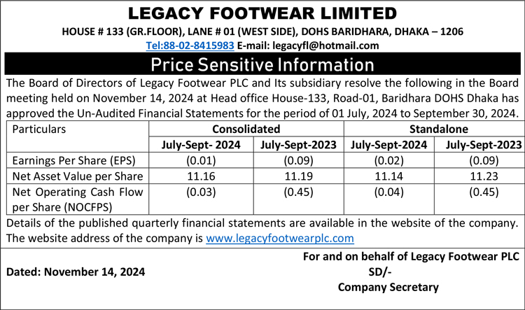 Price Sensitive Disclosure of Legacy Footwear Limited