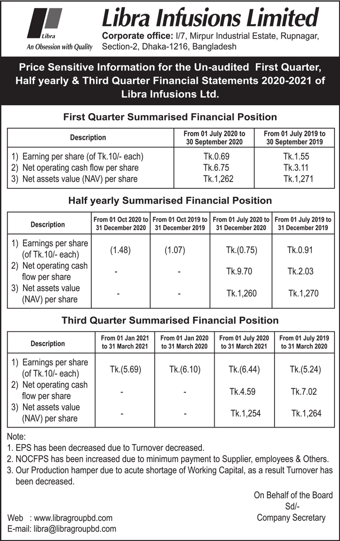 Un-audited Q1 Financial Statements of Libra Infusions Limited