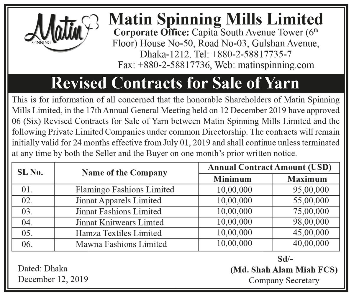Revised Contract for Salte of Yarn of Matin Spinning Mills Ltd
