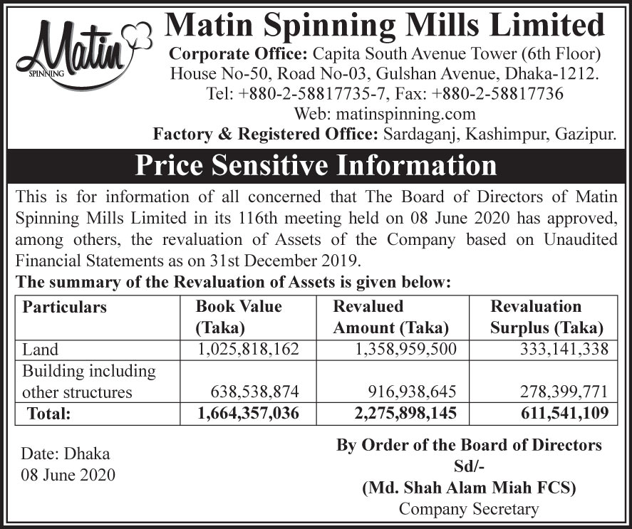 Price Sensitive Information of Matin Spinning Mills Ltd