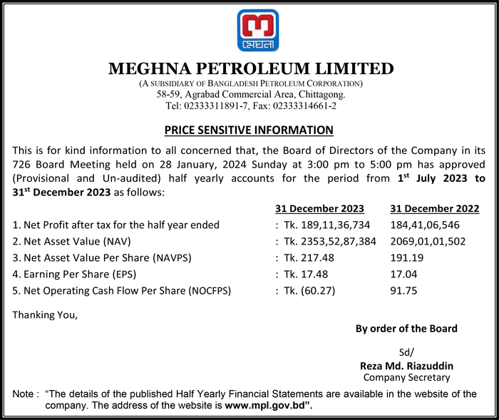 Price Sensitive Information of Meghna Petroleum Limited