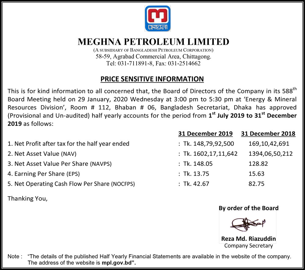 Price Sensitive Information of Meghna Petroleum Limited