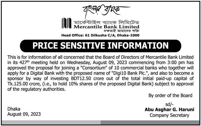 Price Sensitive Information of Mercantile Bank Limited